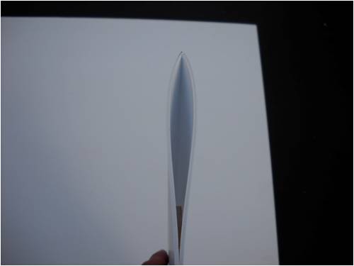 Gordon I don't know, man; it doesn't get much sweeter than this: Side-view of a 6" x 16" symmetrical-section blade on a black background. That trailing edge looks pretty okay to me; it's the leading edge I'm concerned with though, so the view from the back porch doesn't matter much as far as I'm concerned. Same section from a different view on a black background. Similar view using a white background just for kicks. Bottom line here is just this: These blade sections pictured take me about 4 minutes to lay up and glue together. I'm sure that's a far cry from what it takes to make your wings and as far as I can see, it's pretty symmetrical. These are "driven" blades and what I'm after is a smooth pathway through the wind. The faster I can spill the wind, the better this thing will fly. These three I just made today will be going on a (very) small axial-flux generator. The magnet wheels are only 4 1/2 inches in diameter, using 6 pairs of 1" N52 neo magnets and a new stator design I cooked up (details when it works!). I expect this little windmill to turn around 500 rpm no load! . . . . . Mac Nothing difficult is ever easy! Perhaps better stated in the words of Morgan Freeman, "Where there is no struggle, there is no progress!" Copeville, Texas |