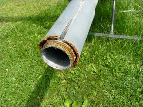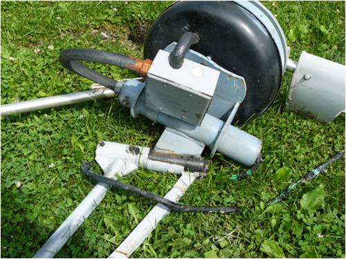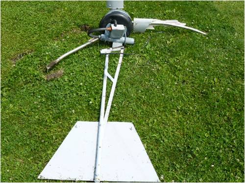 You people would not believe the weather we have had here the last two weeks. Rain, wind, more rain, more wind, winder etc. totally sucks. The misses calls me at work and says (we have a bad storm moving in from the west what should I do with the mill) I tell her (lets not take any chances just pull the switch and shut it down before the storm gets there) She calls me again about 45 minutes later, it sounds like she’s crying (I am like what the f_ _k) she says (I heard this loud BANG and stepped out to investigate, the mill is off the tower and on the ground, but the round thing with the magnets seems to be ok). I get home and start putting together what the hell went wrong. The mill WAS up 47 feet or 14 meters. I had a debris field of about a million bits and pieces of broken PVC that was only east of the tower about 150 to 175 feet in distance. The mill hit the ground (grass, lawn) about 25 feet south of the tower. The misses and the neighbor both confirm that the mill was stopped and or barely spinning before the storm hit full force. Question is how do you get so many small pieces of PVC spread out so far from the tower and only in one direction? Amazingly the tail, alternator, yaw assembly, blade mounting hub are intact. I am very busy with work these days not much time for the mill or other fun things. FEAR not my fellow mill heads my quest to conquer the wind continues on. Jim |