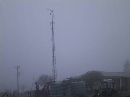 Hi All Sorry I have not posted any more info for the past week. The weather here has been wet cold and very windy. I would have loved to have Phill turbine up for the past day as it would have really tested it out. ( out put and staying power) We have had about 5" 125mm of rain in the past week. I had planned to stand the tower up today but the wind was up over 60-70 km/h with gusts over 100 km/h, so not a good day to do it. I plan to get the tower and turbine up in the next day or so.