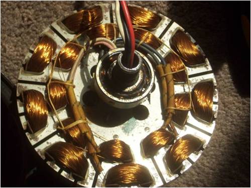 sorry for so many posts but every time I find somthing new I am posting it here to keep a detailed log as to my findings on this project. Soo..... One coil un-wound seems to be Approx. 315 windings for the coil. So that is 120V @ 1 amp with 315 windings each for 9 coils in series. SO would it be safe to say 24v @ 5 amp with 63 windings, with the wires 5 in hand and still all 9 coils in series? Well I guess that is just using figures printed on the fan. I need to get my magnets in place and spin the thing befor I really know what volts and amps will be... We shall see.