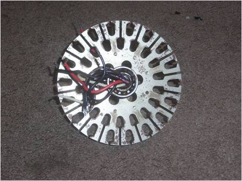 As a starter project into my windmill making endeavors, I thought I would try my hand at a ceiling fan and converting it for wind power. I understand that what I want to do will take countless man hours of tedious re-winding and several curse words due to things not working right.... But that’s the fun part! Here I have a dissembled ceiling fan I picked up for 10 bucks at our local Habitat for Humanities location. Nine poles for the high and low speeds so 18 in total. I think that makes it easy to re-wire this for a 3 phase 24v system. I think I will just re-wire the magnet wire with several in hand to reduce the turn count. Now I am not on the up and up for ceiling fans so here is where I am at and stopped after the total 10 min of work I am into this. On the "Top" portion of the ceiling fan housing there is this metal ring stuck in the housing that originally went around all the poles. From what I see I think that needs to come out and that is where magnets will go. I just need to figure out how that comes out whether it needs to be cut or its pressure fitted like the two pieces of the housing where. Any thoughts or comments welcomed.