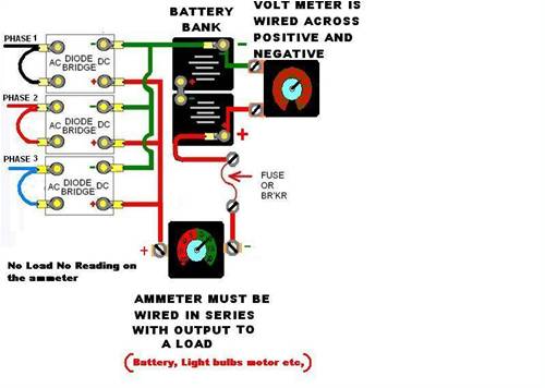 Yes this is the generator. The gen was originally connected to a large battery bank through the supplied controller. I ditched the controller and put in its place the controller that has graced the electronics forum. There was no difference. There is an ammeter in the wind gen circuit that even in a strong wind has never shown a charge of more than 1 amp. The only voltage, apart from the battery voltage, was taken across the the rectifier (one phase to -) and read 15.6 volts. This was DC. The 40 volts taken across the phases the other day was AC. The gen is now in pieces and there is no sign of damage to the windings and the stator doesn't appear to touch the windings. There is a lot of cogging and if the phases are shorted the gen stops or is difficult to turn. From this I presume there is not a lot wrong with the gen, but it doesn't explain why there is no amperage. The gen has been installed for several months on a 10 metre mast. I don't live in a high wind area but occasionally we have strong winds.