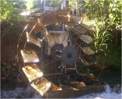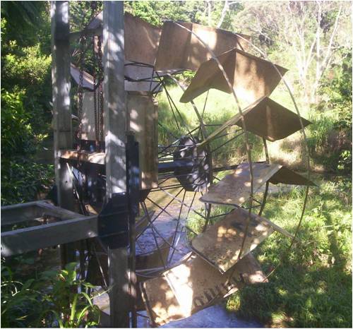 The creek flows all the year round and I only use half of the flow for the wheel.