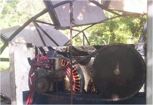 Sorry to put my waterwheel in with your windmills, but a couple of people asked me for photos when I asked a question about using caps with F&P motors. Here are some photos of my setup.
