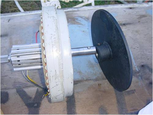 Bit hard to tell by comparing the photos by the real thing in the F&P series but i think I've got an 80 series. Since fiddling around today i got the second stator decogged. Though they spin much easier i thought they would spin pretty much freely. Wish my camera batteries didn't fail me today want to show a pic of the two F&P joined on the existing original spline. It's got the white slat like plastic which came with the second hand F&P that's been cut off in a square and slipped on the shaft it's got the four bolts that bolt the stator onto it with the bearings embedded in the white plastic. I can't see why i could not bolt a horse shoe strap over the white plastic along the spline covering the them securing it to a metal plate mounting bracket and not have to do all the fancy welding to make the other mount. The two F&P motors and apparatus fits nicely back to back onto the one original spline with nothing having to be adapted or done. And i think there might just be enough room to bolt a hub onto it. |