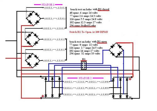 The second Stator I was able to improve Volts And Amps At Low And High RPMS By adding a 3 phase relay ( change it to 3 solid state relays latter )