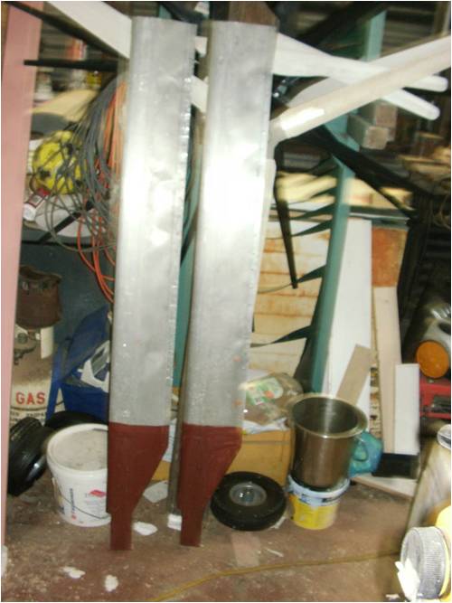 This a quite robust unit with good size bearings and a steel rotor with 48 magnets of the curved ceramic type, these I have removed by heating the outer rim with a electric heat gun to break the adhesion of the glue, they came out easily with a box cutter blade slipped in behind them to break the bond then a screw driver to pop them out, I didn't even break one, miracle for me. I will be fitting neo magnets into the rotor 48 round it and 3 wide, I have got some 10x10x5 mm magnets, as they are .8mm thinner than the original magnets it allows a bit more clearance on the stator and the stronger magnets will make up the difference. One neo magnet is 3 times stronger than the strip ceramic magnet, and there are three across the pole so should be a big improvement. I am using a set of old gyroplane rotor blades that I inherited from the gyro school we had here many years ago, they had a ground strike so couldn't be used on the plane any more. I cut them down to 4 meters diameter and am aiming for a furling speed of 350 rpm in 15 ms wind. Blade attachment plates. The blades are very robust and are designed to lift 500kg in the original configuration, so will have plenty of momentum. The ongoing saga will take several months so i will keep it updated as work progresses. All the best Bob Foolin Around |