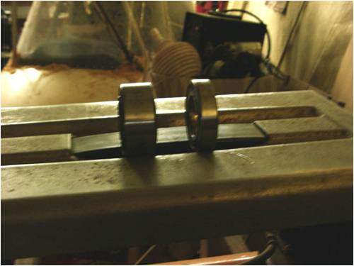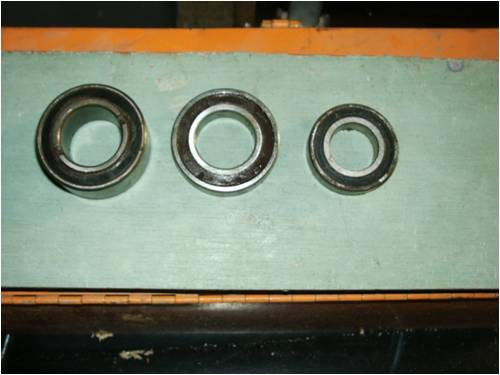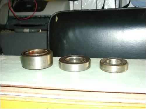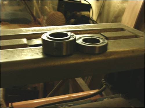 Hi all I have fitted a larger bearing in the front of the motor, this is a bit of a safety precaution due to the heavy blade that I am using, the blades weighs 18 KG when assembled so there will be a lot of force on the front bearing when furling. The bearing on the left is the double race bearing, the one on the right is the original single race from the motor. You can see the extra width of the bearing, it is 10 mm wider than the original bearing. This meant turning out the front housing bearing seat 10 mm deeper to accommodate it. You can see how it comes right to the front of the housing in comparison to the original bearing.