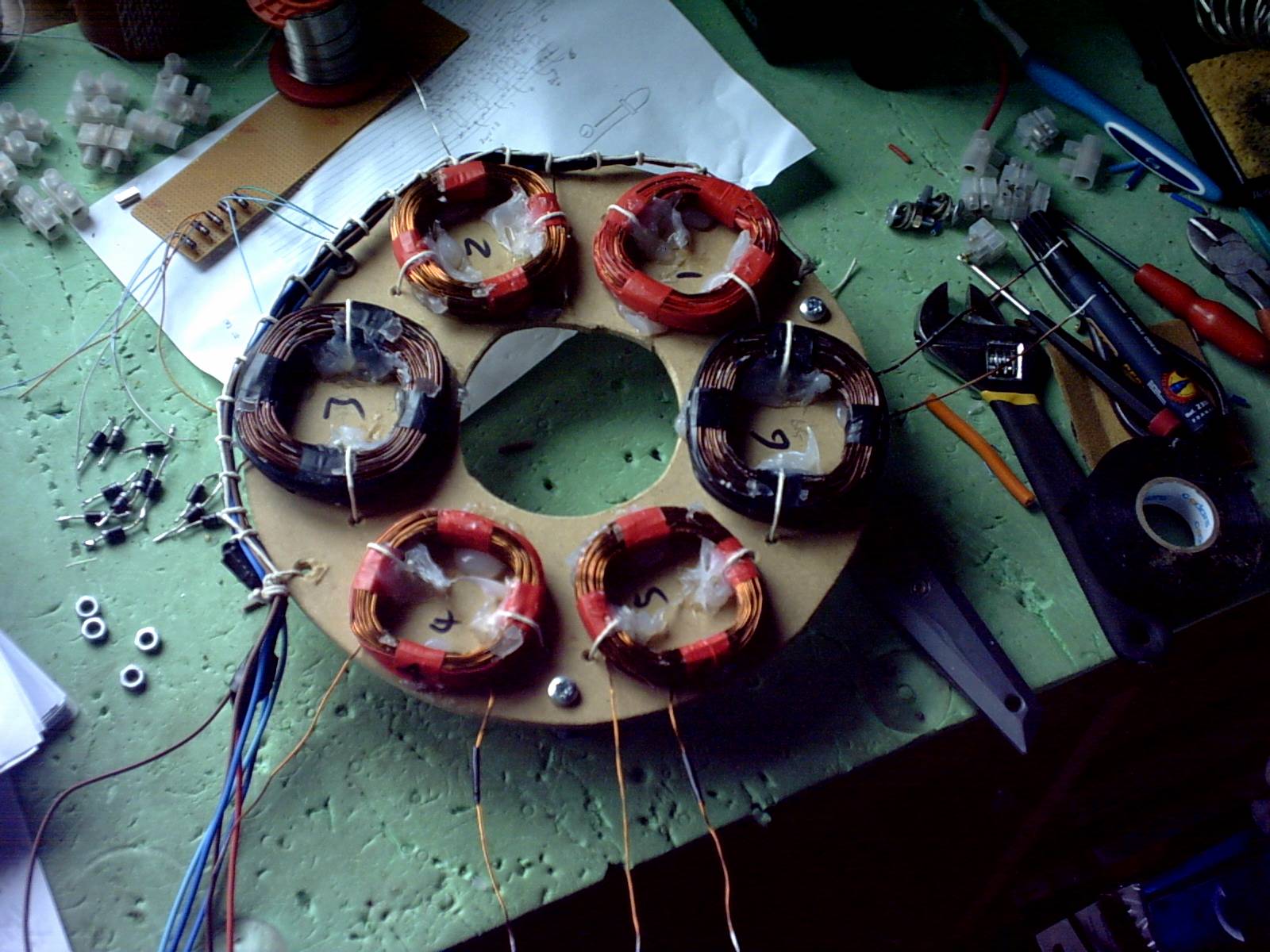 So lets review this design a little. You have your eight magnets in a disk with 6 stationery coils close to them and the magnet disk rotates? Is that basically the design?