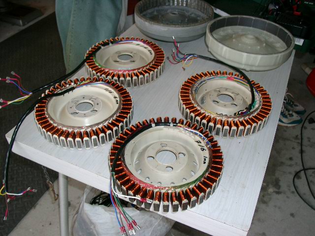I've re-configured the windings on 4 stators of different wire sizes.- I'm interested in the 6 pole at this point of time as wind here is very slight. But one I configured to 7-2 pole in the .8 mm wire . It seems to be way down on volts compared to the 6 pole configurations. Bruce Bushboy |