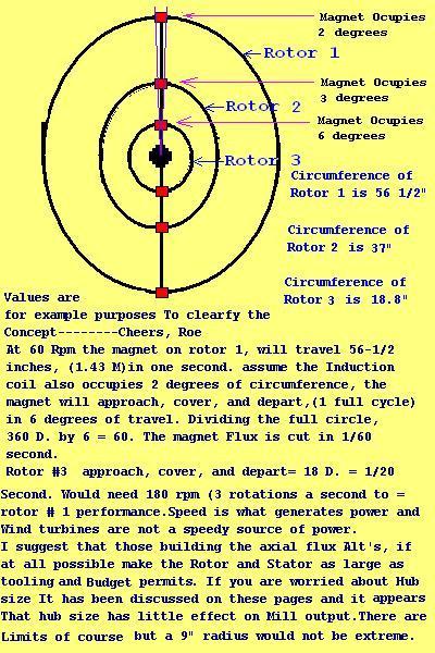 Hi Guys, Thanks for the interest shown, Work in progress should not be altered to mess around with this. Those who have not yet begun to build should consider this option. It does not have to be a monster to build a 18-24"inch(46-61cm)Rotor/Coil Alt. A 1.5m. (5ft.) dia. VAWT. Would be a good size to learn about whats needed to make a real Producer. Keep the Mags small and weak, close together and lots of stator coils with minimum wire turns and series connected. Posted in January 2010, Overdrive VAWT This Link is an earlier post on this Idea. After reading it again I see confusion in the Comparative Section. For this to make sense, Numbers must be placed for a F&P HAWT to get the picture of how much quicker this large rotor cuts the Mag field in the same wind. A lot of you Fella's have more experience around magnets and Coils than I, So the question on steel rings and plates could best be answered by Others. ------Cheers, Roe Time has proven that I am blind to the Obvious, some of the above may be True? |