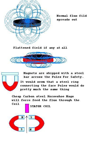 tinker I based those comments on a small mill I'm currently bulding. What I've done is potted a skein-wound coil in resin mixed with magnetite. This surrounds the coil(s) with a magnetic substance. The magnets in this case are half an axial-flux wheel. That means the magnets are arranged alternately N and S on the wheel, with a backing plate tying all their back sides. Their front sides must "bridge" to one another. By running this up close to the magnetite-infused stator, those lines of flux have a better return path to each other and thus will produce more electricity than if they were to jump the air gap on their own. I think the confusion here is that I've "assumed" (and you know what they say about that!) that since I have removed the opposing axial-flux wheel, I'm now running it against air. That perhaps is a mistaken description and is likely where the confusion sets in; sorry. What I'm building here is more like an F&P than a true air core, so just to set the record straight, if I were to run the magnets against the coil with NO magnetite mixed into the resin holding the coil(s) in place, THAT would be a true air core. I actually have a pretty good grasp on this (thanks to Oz) but I have failed in my communication efforts. I'll try harder next time.