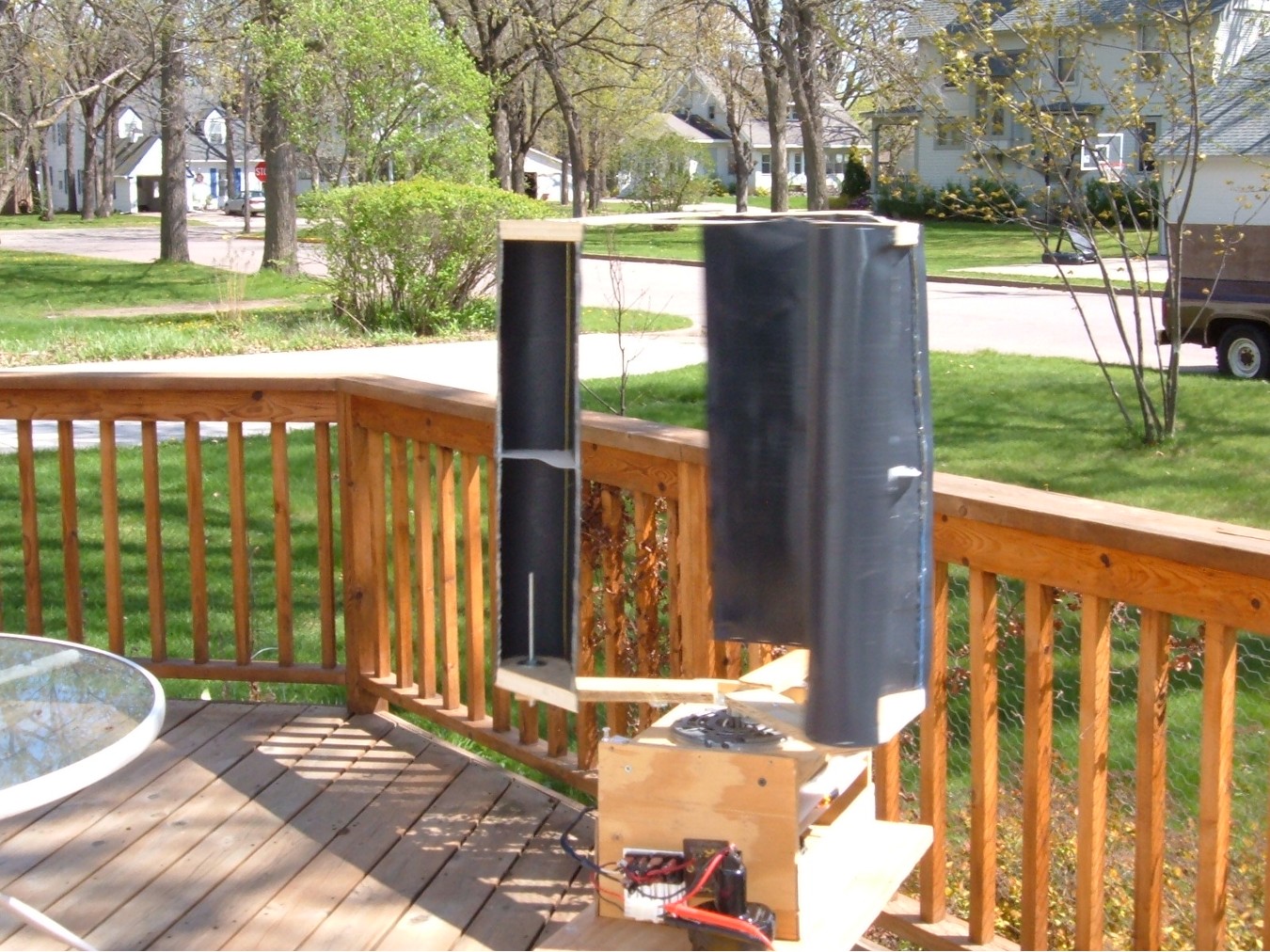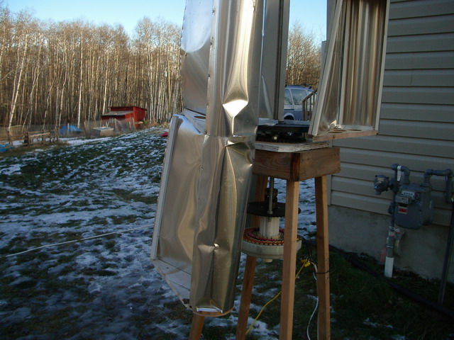 Bug Bit nice how much does it make or have you had a chance to measure the output? Ed has stressed that all of the measurement ratios and angles must be kept acruate for it to perform right. If it wobbles it will throw it out of the diameter path it is designed for. One of the things I am trying to avoid while wondering if it needs a center shaft up to the tops of the wings. I have looked at a pvc skin for mine but the thin version .06 inch has little structural strength/floppy and is almost 3x as exprensive as the foam and still degrades in UV