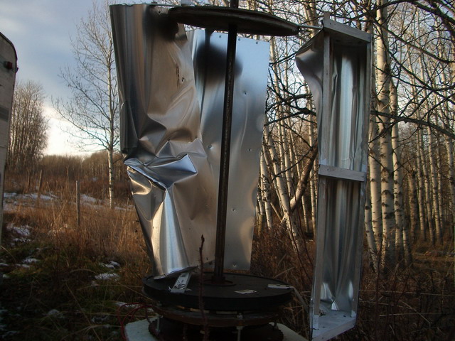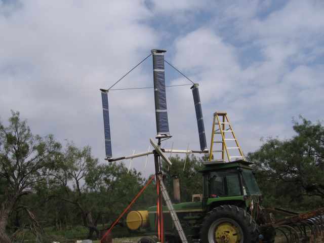 Wow finis, That's a big wing! It will be interesting to hear about the output of that beast when its up and running! Wrap a rope around the shaft and connect it to your tractor on a windy day and have a Tractor vs VAWT pull and see which one wins....