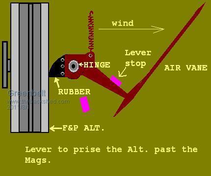 The more ideas the better.They may prompt imaginations and really become worthwhile!Roe,your mechanical idea started me thinking that if I used an alluminium ring to sheild the stator from magnetism the rotor would free wheel up to cuttin.The air vain could then remove the ring(shroud) and instead of the spring(which can fail) have a balance weight to allow it to return in light wind,to reset.The alluminium ring would need to be less than 1mm thick for F&P.No electrics at all.Its just a pipe dream at the moment but could develope into something with help.Whatever comes up,the winner will line up to the KISS(keep it simple st...d)principle.Cheers Rastus