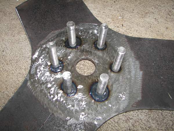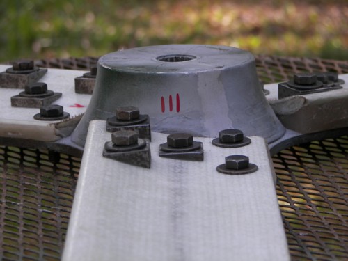 My hub consists of the F & P agitator spline and a prop backing plate of steel that is held together with studs encased in a polyester resin filler.