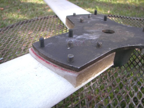 Unlike the intended blades, the Chinese blades needed an adapting spacer to fit the aerofoil profile to the flat hub mounting. They also needed tapered washers so as to adequately clamp the root. In addition to this I used Sikaflex as a bedding/adhesive due to the tear away failures others have experienced.