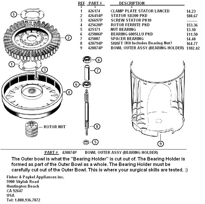 I have ordered a new model stator from F&P today and should receive it tomorrow or monday. It's part No. is 420775P and the cost is $98.15 + $15.00 delivery . You can order the same over the Phone (No. 1300 650 590 ) ask for spare parts and give them part No, your address, and Credit card no. They don't ask for your name on the Credit card --but I guess you tell them this in your mailing address . The guy didn't know anything about it -but he must have called engineering -he was some time- and then he had the part No. \Hope it is correct !!!. So there, more goodies to play with,lol,Ilda brings Bruce's play lunch to the workshop !! Have fun Ps- be home all over Xmas /new Year if anyone in the area of the Gold Coast /Brissie Etc you are welcome to drop in Bruce Bushboy |