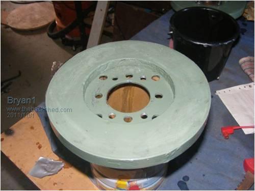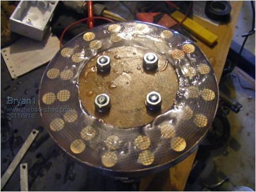 I had that spare drum brake hub here and it worked out purfect for size so I'll be using that. As far as blades go I reckon 1.2 metres diameter gives the best output in Altons Wind Calculator so I'll wind the coils to suit that. For the test coil I'll use 1mm magnet wire but if I can fit 1.6mm (14awg) wire I will for the final stator. The output goal for this small dual axial will be around 500-600 watts for a 24 volt array. The only real expense will be for some polyester to cast the stator and I'm going to cast in a thermistor to monitor temps. If the temp goes above 65C then my circuit will short the genny until it cools to ambient temperature. As the neo's are only rated to 80C and epoxy about the same if the temp does rise then my little circuit will come into action.