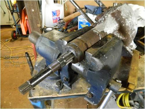 I then shaped the new 24mm shafts end into a basic cutting tool and reamed out the back bearings. The white metal is like lead, easy to cut.