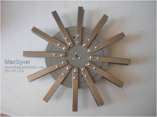 using a hand saw and mounted to the hub shaft with flat washers. I
