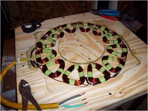 This is a photo of the rotor that's being used on the turbine, taken a couple years ago when I removed it from a different machine -- Chris off-grid in Northern Wisconsin, USA |