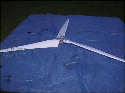 I'm trying to picture in my mind what a 3 foot diameter rotor like that would look like As someone else pointed out, the rotor diameter on this machine is 3.2 meters, which is 10.58 feet.. This is one of the smallest turbines I've built in quite awhile. I selected that size because the output of the blades is matched well to the controller. And I just happened to have that set of blades in a box on the top shelf for the last two years.