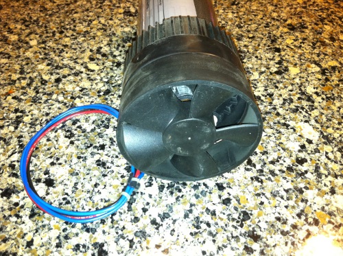 There is a fan on the back side of the motor, that draws the air through (the black thing). It spins when the blades spin. I hooked a meter up & get about 22 volts & 13 amps. My drill slowed down when measuring the amps. I plan on working on it this weekend, so I will have more pics for you on Sunday.