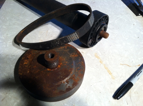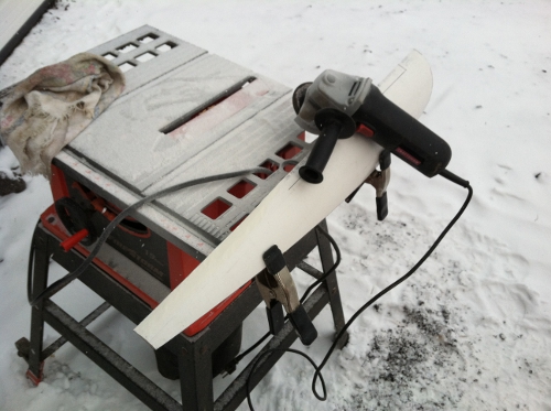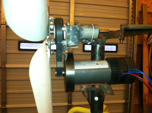 I accomplished some more this weekend. But I think the design will need to be changed. When I tested it in the wind, I was only getting about 7 volts. Therefore, something will need to change. I may need to gear the motor or have a different design for the blades. I had a basic idea of the design when I started, but I created things on the fly. If I do go the route of gearing the motor, I will use the small belt from the treadmill. If I go the route of changing the blade design, I was looking into some blades called Raptor. Please let me know if you guys have any ideas. Here are some pics from the weekend.
