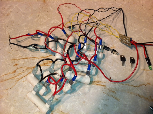 Throughout this windmill building process, I was also working on a dump controller. After scouring the web and not wanting to spend a few hundred dollars, I ended up buying a kit from ghurd in 2010. I did not have the ability to use it until now (built our house in 2010). When I tried to put the kit to use, I noticed immediately it was not behaving correctly. Instead of buying another unit, I decided to contact ghurd to see if he had any ideas. Let me tell you, I felt very confident when I received a kind/positive email back from ghurd. Even though I bought it 2 years ago, he guaranteed that we would get it up and running. After trying a few suggestions from him, the problem (2 bad mosfets) was discovered and I was back in business. He went above and beyond by sending me 3 new mosfets free of charge. Bottom-line, if you need an inexpensive/reliable dump controller, get it from ghurd. I was very impressed with his customer relations. Here are some pics from the progress so far.