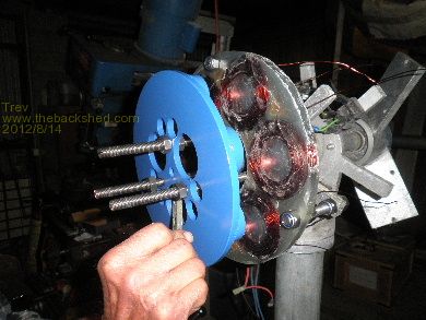 The first magnet plate had to have a spacer to hold it back from the bearing nut, on the F&P spline, and a spacer (pipe) over the rest of the spline so the nut on the thread could hold the magnet plate on tight.