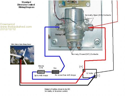 In my system I have this; http://ghurd.info/dc.html This Ghurd unit controls the connect to the dump load, with this Power mosfet unit 220Amp; http://www.st.com/internet/com/TECHNICAL_RESOURCES/TECHNICAL _LITERATURE/DATASHEET/CD00002654.pdf It connects without any relay tips ! The most critical part connecting big DC loads are the relay tips. I have made my own dump load from a quality resistance wire, which you can find from pottery kilns and enthusiasts sites. It is made in a stone based structure and like this; http://www.google.fi/imgres?hl=fi&sa=X&tbo=d&biw=1440&bih=74 8&tbm=isch&tbnid=1sBTqgJd-Bh-LM:&imgrefurl=http://www.drsola r.es/eng/products_wind_turbines.html&docid=QqgfrhjkZ1wjvM&im gurl=http://www.drsolar.es/images/Dr%252520Solar%252520dump% 252520load.JPG&w=502&h=404&ei=miXKUIUphvHhBMe2gfgF&zoom=1&ia ct=hc&vpx=4&vpy=425&dur=1494&hovh=201&hovw=250&tx=110&ty=113 &sig=111797391652780640031&page=1&tbnh=144&tbnw=168&start=0& ndsp=26&ved=1t:429,r:12,s:0,i:117 Antero |
