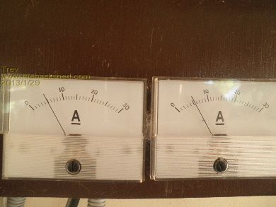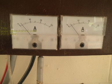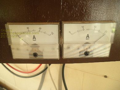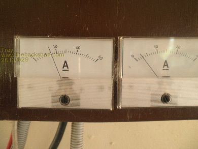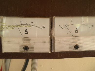 Both seem to be fairly on par in light wind, which is what we often get around here. The larger diameter machine climbs in power production very quickly as the wind speed increases though. Here are some pictures of the Amp meters back in November 2012. The left hand meter is the 3.4m / 360mm AXFX. The right hand meter is the 2.5m / 290mm AXFX.