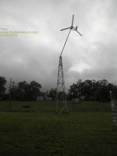 Recently EX tropical cyclone Oswald passed through here. I was at school and Marcy emails me a picture of the bent tower and says I can't get home, the creeks are flooded and no way through.