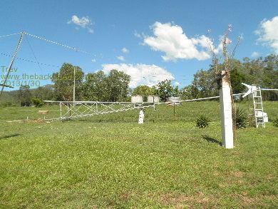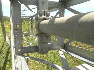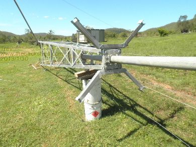 I also dropped the other tower too. The straight pipe that was bolted to the shed was changed to suit the tall tower. I also made some arms to hold the stainless steel rope out a bit in the middle of the tower.