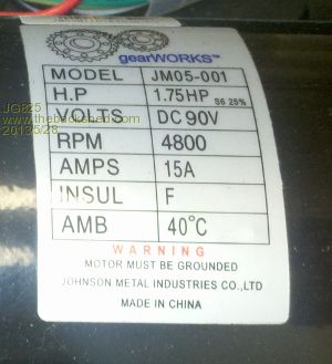 Two years ago I built a three blade windmill using an old treadmill motor. Here is the spec plate from the motor: