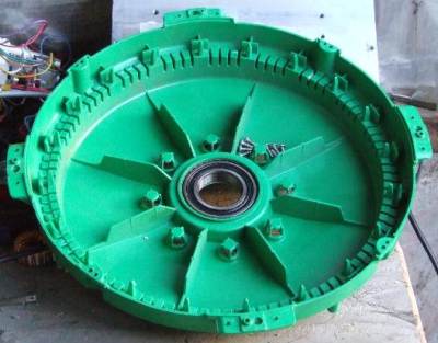 Hi All Some more info. Since I am stripping ,cleaning, rebuilding and checking the electrics I have found. The first 6 completed all had there cover plates busted and one had a broken wire from a loose magnet. Apart from the above and being dirty they were fine. Here is a bit more technical stuff.The units are described as being a Brushless DC Motor. As an electric motor the 500 watt unit draws 3.5 amps which in theory should produce 840 watts as a generator with a blade capacity of about 1 HP. ( Speed / Torque ? ) The big 1500 watt draws 9.8 amps with an output of 2280 watts with a blade capacity of about 3 HP.At this stage it is still very speculative however they are serious machines and as said before will require big gutsy blades. Some other answers. The green covers which have the magnets between them rotate around the fixed centre pipe ( not shown in photos).This long pipe will be about 43 mm with the 3 output wires going into it and out past the covers and into your rectifiers. Each of the 20 magnets spans 6 legs of 6 coils but I have not properly researched this. They the warehouse had WRECKED ABOUT 200 units some 6 months ago for there copper value . SHAME SHAME It may be possible to get in on the next lot and try to overcome the BIG HAMMER. With a lot of us using them anything might happen . In closing could I ask that no one contacts Seeley as it may be counter productive at this early stage. They may not like what we are doing, who knows. I will start to make some delivery boxes this coming week.The boxed and checked generators ready for posting will cost $45 each. All for now Dennis L |