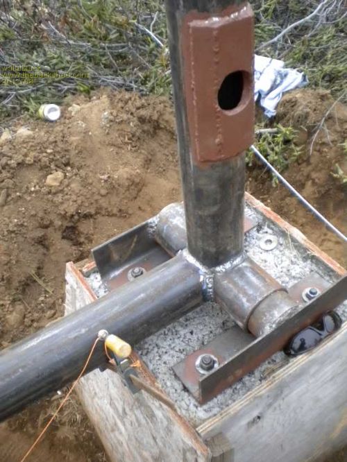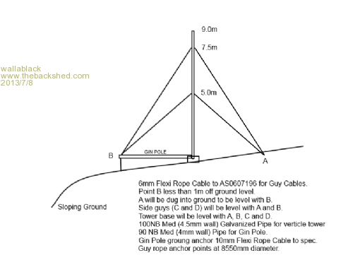 Just remember Murphy(that great guy) is just around the corner and ANY bodgy work will give him a reason to come around. When welding pipe towers it is OK to weld ALONG the pipe but to weld AROUND the pipe is asking for trouble down the track if that weld isn't properly supported using gussets or a clamp that goes around the pipe, then that said clamp is welded on one side ALONG the pipe and guy wires can be attached to that point.