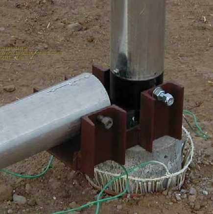 The above image is another one I semi like. Nice and solid but totally relying on bolts to keep it all together. has the advantage to be checked very often and any maintenance can be done at ground level with zero fuss. I guess it also had less part really as it is only two plates exactly the same and a pole from the ground for it to swing/mount on.