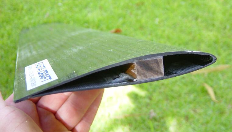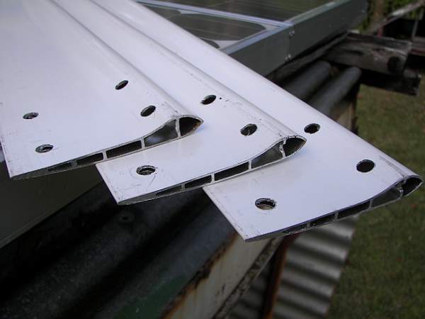 Pleasant surprise to find they are not solid but are extruded. I would rate the extrusion as quite good. Very light with a good finish though 95mm shorter than the old glass blades. weight 700g ea (glass 1,300g ea)