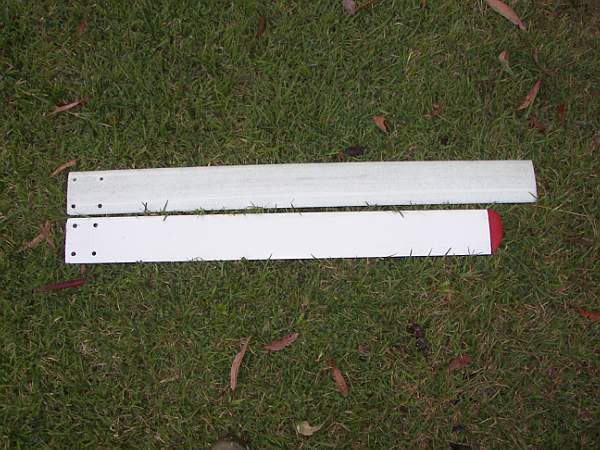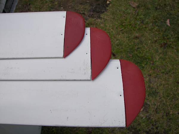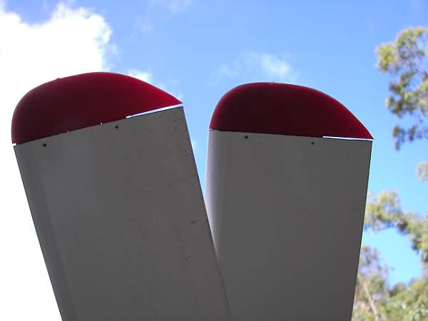 It's what they do to this quality extrusion that tells you it's Chinese. The tip (red) is a plastic moulding that is inserted into the extrusion. It is held in place by centre punching the aluminium, 2 on top n 2 below. God knows how these dimples stop the tip from flying off in a good spin cause I don't. Oh yes, a big gap on each is where the tip doesn't fit properly, but on the bright side, it gives the native bees and wasps somewhere to build nests.