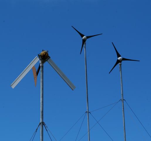 Second turbine from envirowind was a newer design, smaller and with aluminium blades. We didn't use either of the supplied towers as they are s**t and too low anyway.