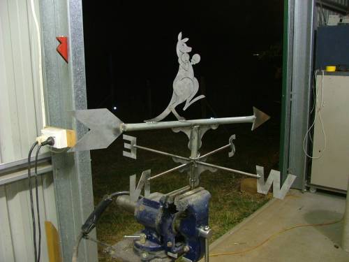 Unfortunately the boxing kangaroo is copyrighted, so I cant sell these things. But its given me some ideas for other Ozy weathervanes, like a Emu or Wombat. All the sheet work is lasercut from 2mm zinc plated steel.