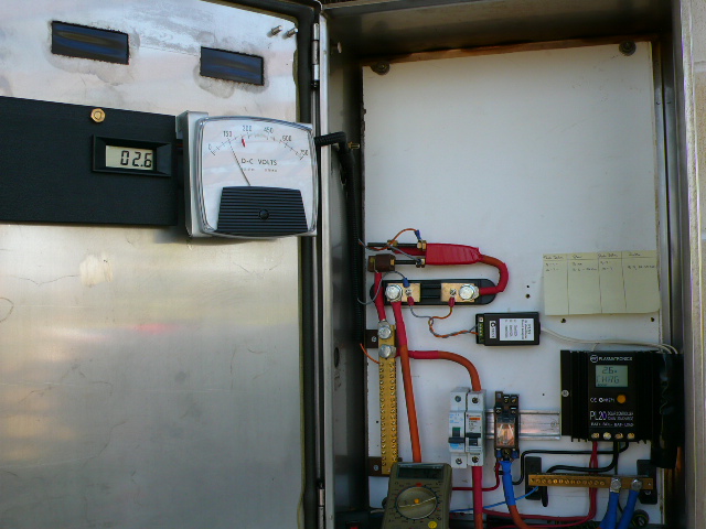 Yea Gill it was only 10 to 20 k so was only getting .5 to 2.6 at 54V = 25 to 160 watts . The volt meter in the cabnet door is reading in Watts and the amp meter is done like Glen explains in info except if I tap 9v of the batt bank it doesn't work must have a common earth ... Phill