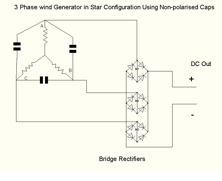 There are many other ways of wiring caps in but the above schematic shows the best method. I have now put my money where my mouth is so give it a try. Our 5 blade Piggott easily turns 6 Amps at 26.2 Volts into 12 amps at 27.5 We continually have to use our dump load . That is in a moderate wind Regards Dennis L