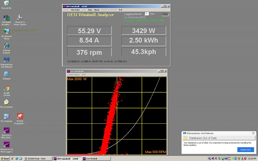 Hi Dave, I can not really see the point of giving output data into loads that do not represent anything that is useful like energy storage / battery charging or a grid tie and then secondly to get to the higher output the RPM is in a range where a wind turbine rarely operates at unless its in Antarctica. You might have some kind of controller I have not heard of to turn that data into something. The voltage range of 16 to 137.5V is such a wide range and you have not given a purpose other than 86Ohm is the best load. Testing and posting data is great but what is normally an 86 ohm load and has a purpose. Also setting up Star delta switching ect to maintain maximum output at RPMs that can only be achieved in 40+ KLM wind is messy and doomed. Dont get me wrong , I think the F&P is a great thing and is one of the few PMAs can be smashed by 100klm winds all day and not burn out and if it strong enough to take the battering. We did a lot of testing a few years back and I cut my turbine teeth on the F&P and to date have not seen or come across a black rotor. But if the windings are not .8 or 1mm then I would think the output would be limited in real world testing and if it gets over 400W I would be surprised Below is probably a bit of a plug but of no use here as 99.9% of the audience and members here are not the buy it ready to go type and more build it DIY. Also watching for new posts in the wind section here is at an all time low so please don't be discouraged Anyway what the latest 1kW - 2.5kW OZ Wind Turbines can output into a 48V / 24V battery and all at under 400Rpm with no Epoxy. The logging screen is for a 2.5kW has been collaged as only 1 peak can be shown at a time but these are absolutely one of the best Alternators. Everything is kept at very low RPMs and in control and coupled with the unbelievable torque of the GOE222 Airfoil it makes them the a very high performance turbine. In 20 - 25klm it is just ticking over at 1kW into the batteries.