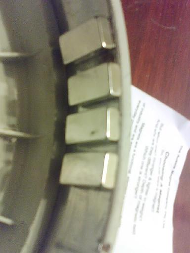 ok got the old magnets off ok, new ones arived today there 6mm * 12mm * 25mm neo, very strong magnets tryed to locate on rotor but the forces were pushing them apart so i couldnot get the spacing i required. might need to glue as i go. what about the wall thickness, i have read that these original hubs will flex out of shape under the load of the neo's. will you strenghthen it? also i was wondering whether more steel lamination is required becouse of the stronger magnets? from a electronic point of view not strength.