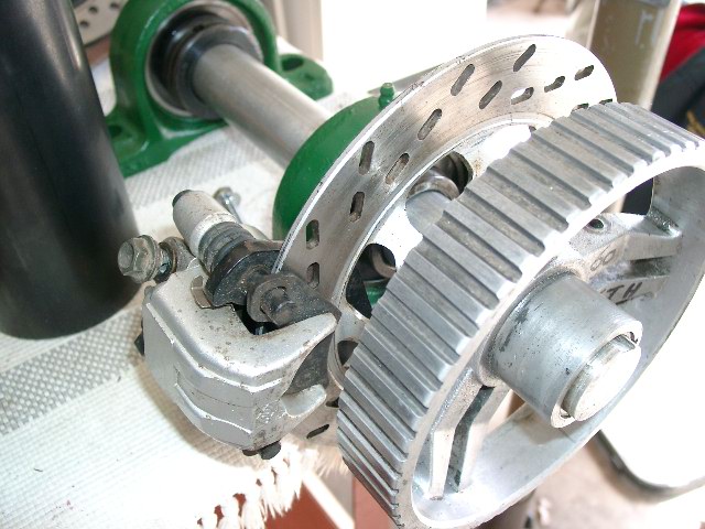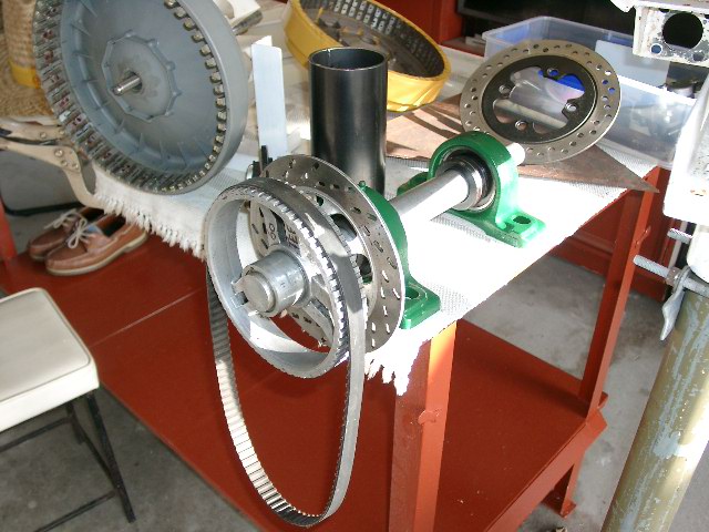 Hello Crew,, been working on a new geared timing belt drive shaft ,lately. I've fitted a motorcycle disc brake for easy shut down in storms-we get a few through here,100+ Kph .