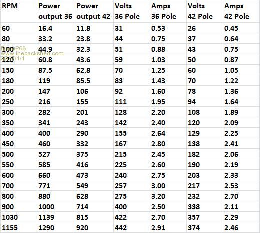 I would be very interested in seeing how a 42 pole stator can be configured to match this 36 pole stators (with black rotor cap) data or better it. I'm not referring to the modified 7 phase wired to use a black rotor cap as the wiring is quite complex pull off and once done is hard to reconfigure.