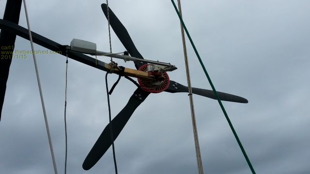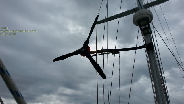Btw: a week ago in a gust at Inskip , 35kts, 35amps , 1.6m 3-blade , the whole mill crashed down on deck when the pivoting pin sheared off. Lost my best blades (old frg) from a German " Black 300 ", extended to 1.6m.